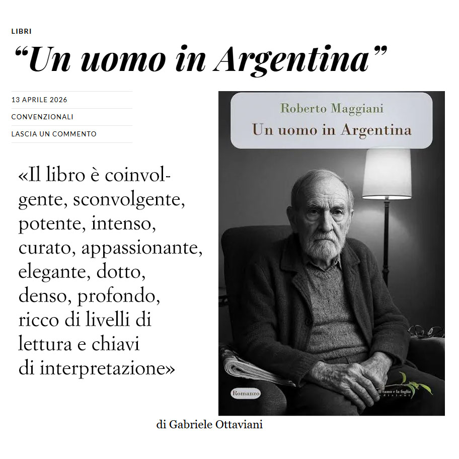 «Un uomo in Argentina, Roberto Maggiani, Il ramo e la foglia. Presentato nella longlist del prestigioso premio Strega per quanto riguarda l’edizione di quest’anno la cui premiazione si terrà come sempre l’estate prossima ventura, il libro...